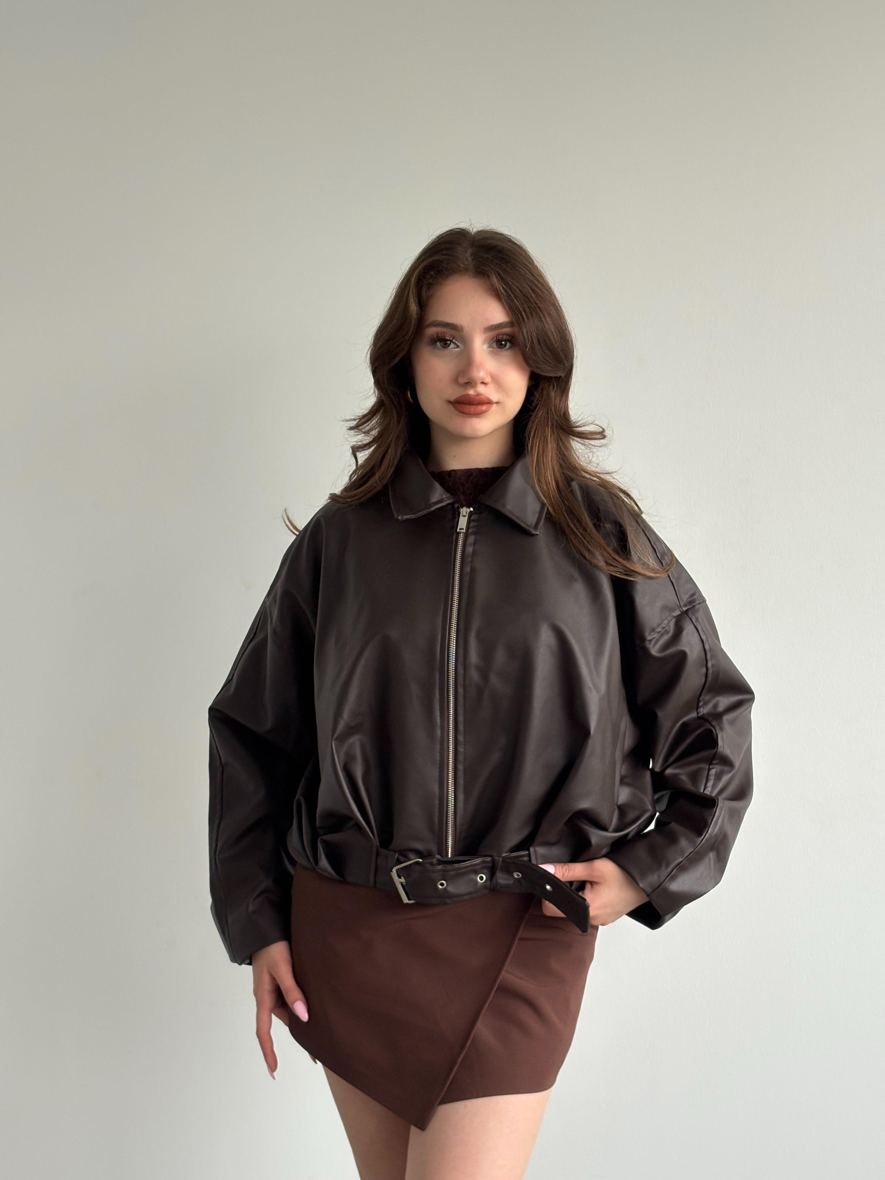 Deri Oversize Balon Kol Ceket