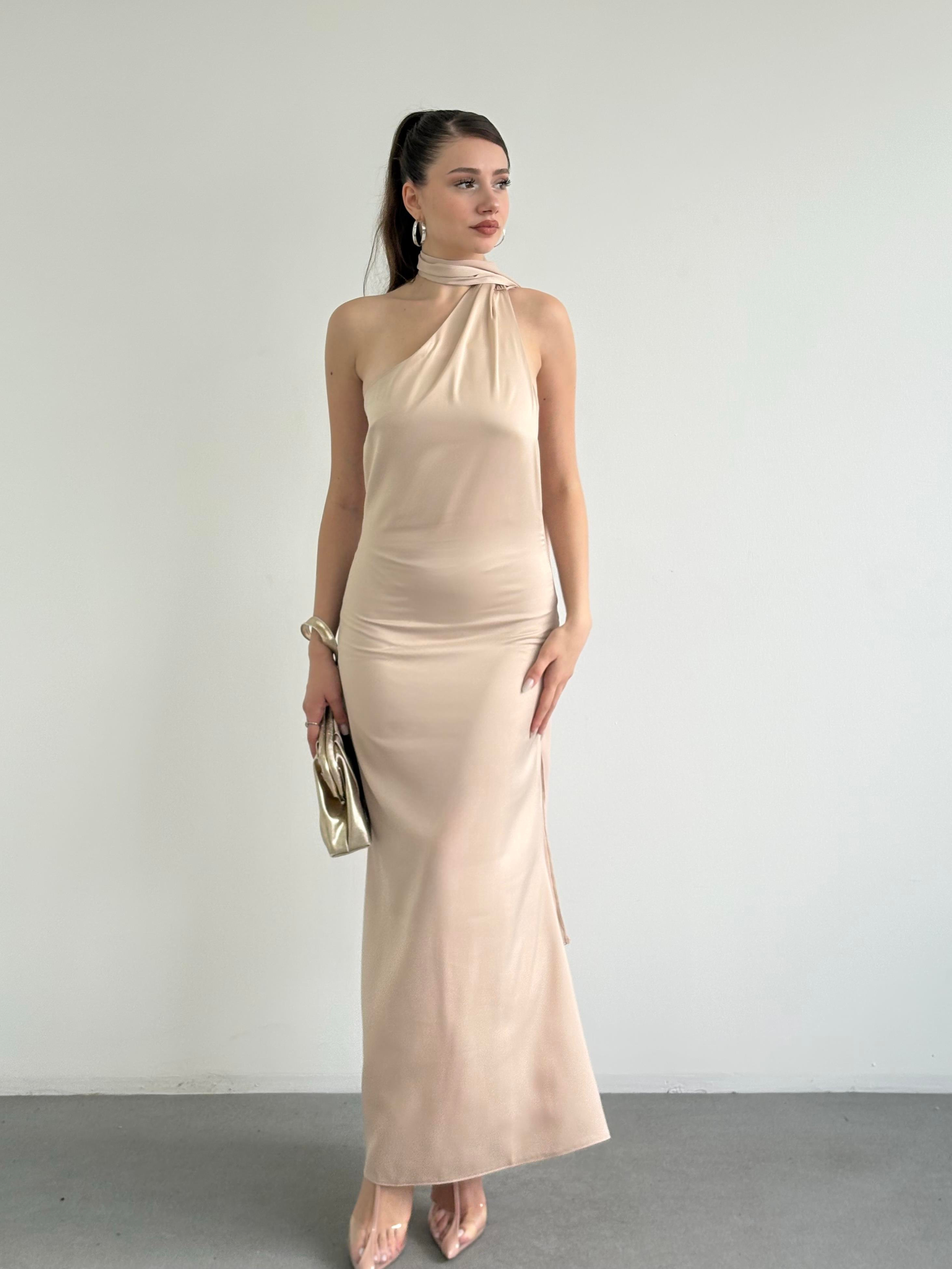 Saten Şallı Elbise