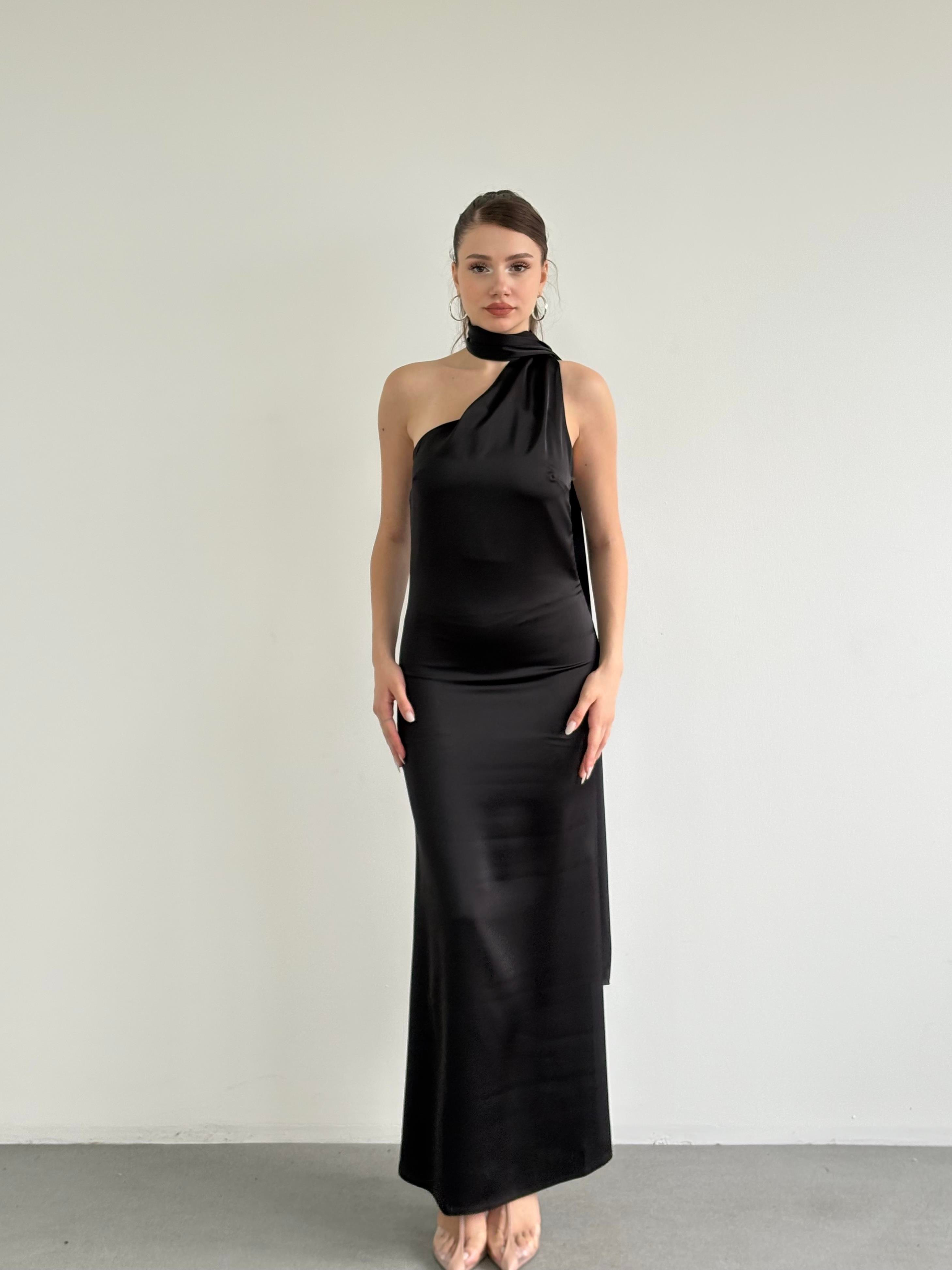 Saten Şallı Elbise