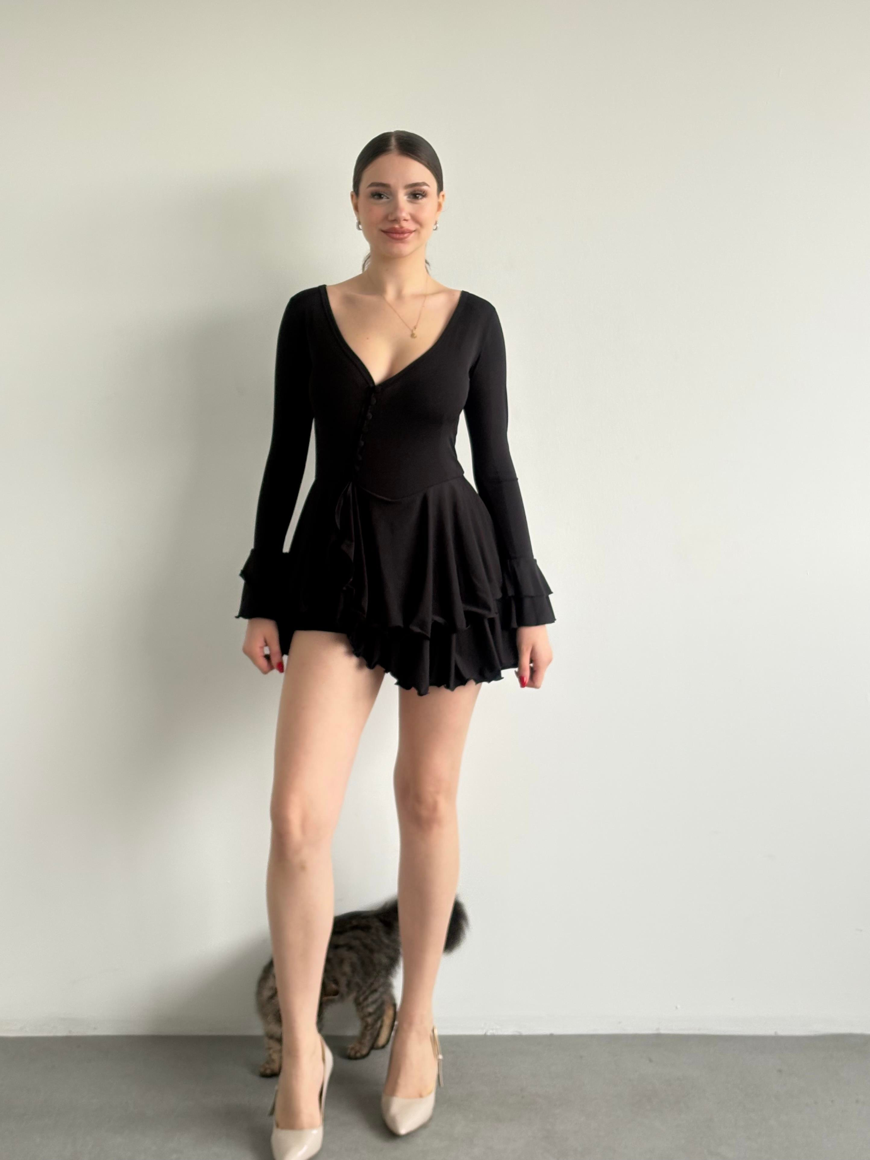 Şortlu Mini Volan Kol Elbise